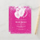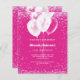 Un arrière - plan rose vif. Décoré de confettis roses et de ballons blancs. Texte blanc. Personnalisez et ajoutez un nom et des détails du parti. 1 feuille = 1 invite imprimé bord à bord.