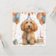 Belle illustration de chiens Goldendoodle portant un casquette d'anniversaire autour d'un gâteau d'anniversaire et de ballons. Parfait pour les amateurs de chiens ou de chiens de famille.