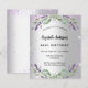Un arrière - plan faux argenté avec parties scintillant violette, étincelants, fleurs de lavande, fleurs et végétation d'eucalyptus. Personnalisez et ajoutez votre nom et les détails de la fête.
