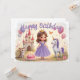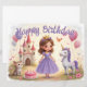 Une petite princesse célèbre sa journée spéciale avec une licorne, un gâteau rose, et des ballons joyeux dans une prairie onirique de conte de fées, où la magie scintille dans chaque coin et où le bonheur remplit l'air comme de la poussière d'étoile