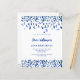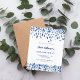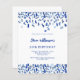 Une invitation moderne, élégante et raffinée. Un arrière - plan blanc décoré de confettis bleus. Personnalisez et ajoutez un nom et des détails. Texte bleu. 1 feuille = 1 invite imprimé bord à bord.