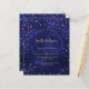 Une invitation glamour à la fête d'anniversaire pour lui et elle. Un arrière - plan bleu marine décoré d'étoiles faux or. La couleur bleue est inégale. Personnalisez et ajoutez un nom et des détails du parti. Texte de couleur dorée. Un grand numéro d'âge comme filigrane. Retour : bleu marine arrière - plan et étoiles d'or. 1 feuille = 1 invite imprimé bord à bord.