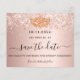 Une carte Save the Date pour une mascarade de 50e (ou tout âge) anniversaire. Un arrière - plan à l'apparence métallique dorée rose décoré de poussière de parties scintillant et d'un masque masqué. Personnalisez et ajoutez une date et un nom/âge. Le texte : Save the Date est écrit avec un grand script de style à la main tendance avec des swashes.