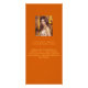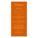 Carte menu fête d'anniversaire. Personnalisez et ajoutez un nom, un âge, une date et le menu. Un arrière - plan orange brûlé. Lettres de couleur dorée. Retour : ajoutez une photo de la fille d'anniversaire, des faits amusants et des noms.