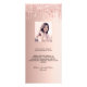 Carte menu fête d'anniversaire. Personnalisez et ajoutez un nom, un âge, une date et le menu. arrière - plan d'or rose faux métallique, décoré de gouttes de parties scintillant faux. Lettres de couleur noire. Retour : ajoutez une photo de la fille d'anniversaire, des faits amusants et des noms.
