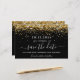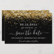 A Enregistrer la date pour une fête d'anniversaire de 30e (ou de n'importe quel âge). Un arrière - plan à l'aspect métallique doré rose décoré de poussière de parties scintillant imitation. Personnalisez et ajoutez une date et un nom/âge. Le texte : Save the Date est écrit avec un grand script de style à la main tendance avec des swashes.