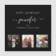 Une carte d'amis pour le 21e anniversaire d'une femme (ou tout âge), célébrant sa vie avec 3 de vos photos d'elle, de ses amis, de sa famille, de son intérêt ou de ses animaux de compagnie. Personnalisez et ajoutez son nom, son âge de 21 ans et vos noms. Lettres de couleur blanche. Une couleur arrière - plan noire classique et chic. Son nom est écrit avec un script de style moderne écrit à la main avec des swashes. Pour que les swashes ne suppriment que le nom de l'échantillon, laissez les espaces ou émoticônes devant et après le nom.