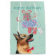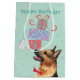 Heureux voeux d'anniversaire avec ce design mignon avec un berger allemand souriant équilibrant une pile de cadeaux d'anniversaire sur son nez. Le texte peut être facilement changé; il suffit de cliquer sur le bouton personnaliser.