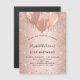 Une invitation magnétique pour un 21ème anniversaire élégant (ou tout âge). Un arrière - plan rose en or. Décoré avec des gouttes d'or roses, la peinture goutte à goutte et des ballons. Personnalisez et ajoutez un nom, 21 ans et les détails de la fête. Le nom est écrit avec un script de style écrit à la main. Une invitation et un rappel Save the Date pour vos invités!