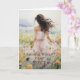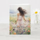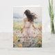 Une belle carte d'anniversaire pour votre nièce. Une jeune femme aux cheveux foncés marchant dans un champ de fleur sauvage