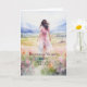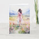 Une belle carte d'anniversaire pour votre nièce. Une jeune femme aux cheveux foncés marchant dans un champ de fleur sauvage