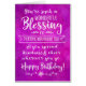 Souhaitez à quelqu'un un anniversaire heureux tout en leur rappelant quelle bénédiction ils sont dans votre vie avec cette élégante lettre à la main design typographie style. Avant de la carte affiche le message en blanc, "Vous êtes une bénédiction merveilleuse pour tous ceux qui vous connaissent et vous répandez la gentillesse et la joie partout où vous allez. Joyeux anniversaire !" Design apparaît sur numériquement texturé violet arrière - plan d'aquarelle Intérieur comprend ce message mais peut être customisé pour répondre à vos propres besoins : Votre anniversaire est un moment parfait pour vous rappeler : Vous êtes un cadeau extraordinaire à tous ceux qui vous connaissent, en particulier moi. Que Dieu vous bénisse richement dans l'année à venir et toujours!