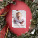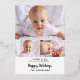Élégante Joyeuse & Bénie 4 Collage photo Annonce de naissance de Noël avec accents de feuille de rose or véritable. Pratique Carte de Fêtes et Annonce de naissance 2 en 1.
