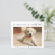 Faire-part de fiançailles économique et mignon avec une photo de votre animal de compagnie, "Mes humains se marient" dans un mélange de typographie simple et d'une écriture élégante (vous pouvez personnaliser en "Nos humains"), vos prénoms et le lieu et la date de votre mariage si vous le souhaitez. Au verso, personnalisez votre message d'annonce de fiançailles, les détails de l'enregistrement de la date, et ajoutez vos noms (et le nom de l'animal de compagnie aussi) dans une écriture qui ressemble à une signature.