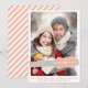 Annonce de photo save the date en corail et gris. Le dos présente un motif diagonal en blanc et corail.