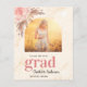 Fond imprimé marbre doré. Décoré d'herbe de pampas et de fleurs rose blush. Personnalisez et ajoutez votre propre photo du diplômé. Ajoutez l'année et le nom de l'école. Avec le mot : Diplômé écrit en grandes lettres.