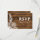 Un beau design rustique en bois de grange et dentelle pour ces cartes de réponse de mariage que vous personnalisez pour votre journée magique à venir.