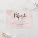 Vous avez dû reporter votre événement ? Pas de problème, informez vos invités avec cette élégante carte d'annonce de report de mariage (ou tout autre événement). Design simple et élégant avec impression de lavis aquarelle en marbre rose doré. Détails de typographie Script manuscrits modernes. Possibilité de l'utiliser pour tout événement. Espace pour ajouter votre message personnel.