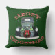 Une photo d'une camionnette vintage de 1947 a été retouchée dans une image rustique en faux aquarelle. Il y a une couronne de Noël décorée d'un ruban rouge et des boules sur le grill du camion, la formulation Joyeux Noël est rempli de bandes de canne rouge et blanc. Le design est de chaque côté du coussin - un côté du coussin a un arrière - plan vert profond, l'autre rouge foncé. Vous pouvez changer les couleurs arrière - plans en couleurs différentes si vous préférez.
