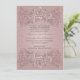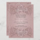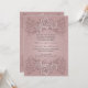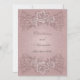 Une bordure supérieure et inférieure de roses donne un look classique à ce faire-part de mariage mauve. Le texte customisé est placé entre les fleurs tandis qu'un filigrane des bannières florales s'imprime verticalement derrière le texte. Disponible en couleurs alternatives avec des produits correspondants.
