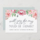 Choisissez ces belles cartes pour demander à votre meilleur ami, soeur ou aimé d'être votre bonne d'honneur dans le style élégant. Le design floral vintage présente des pivoines d'aquarelle rose vif au sommet avec typographie décorative et lettrage gris bleu fumée. Le libellé de la carte d'honneur de la servante d'honneur dit : "serez-vous ma servante d'honneur ? Je ne peux pas dire que je le fais sans toi !" Ajoutez le nom et le nom de votre servante d'honneur ou personnalisez-le avec un message entièrement personnalisé en bas.