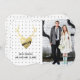 Gold Antlers "Be Joyeux" Carte de vacances Rustique moderne avec photo. Elke Clarke © Design moderne et tendance avec bois dorés, coeur sur un arrière - plan motif pois noir et blanc. Avec des mots "soyez joyeux" dans une police de script. Design polyvalent et moderne pour les jeunes mariés ou les familles. Autres couleurs disponibles dans notre boutique à l'adresse www.zazzle.com/monogramgallery