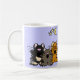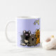 Les chats merveilleux d'allégresse de chant de bande dessinée attaquent ou voyagent conception de tasse. La lune et les étoiles sont à l'arrière-plan. Vous pouvez également ajouter le texte fait sur commande en passant commande. Grande idée de cadeau.