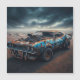 Blue Classic 1969 Chevy Camaro avec souffleur et taches de rouille dans le désert pendant l'apocalypse.