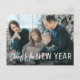 Joyeuse carte de nouvelle année, script de brosse blanche moderne et une belle photo. Le texte, l'image et les couleurs peuvent être personnalisés.