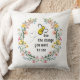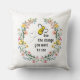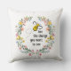 Beau oreiller à jetons avec une abeille et des fleurs sauvages avec un message inspirant : "abeille le changement que tu veux voir" avec différentes tailles et tissus disponibles.