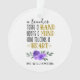 Appréciation de l'enseignant cadeau personnalisé en ornement or avec fleurs d'aquarelle | Montrez à votre professeur préféré combien ils sont appréciés. Ce ornement personnalisé présente une jolie typographie qui dit "un enseignant prend une main, ouvre un esprit et touche un coeur Accents en lettres d'or. Un joli bouquet de roses violet orne votre décoration spéciale. N'importe quel enseignant adorerait ce cadeau ! Elle pensera à vous chaque Noël ! Personnalisez avec le nom de votre professeur préféré. L'ornement fait partie d'une collection. Conçu par : Beverly Bainbridge Homespun Cottage Designs E : homespuncottagedesigns@gmail.com