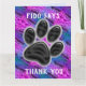 Express votre appréciation à votre animal de compagnie ou marcheur de chien avec ce carte de remerciements avec un grand empreinte de patte noir dressé contre un arrière - plan rayé diagonale de bleu et violet. Tout le texte peut être customisé rapidement et facilement.