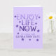 Mots frais dans une conception fraîche. Les mots, "apprécient la vie maintenant" et "elle a une date d'échéance" sont dans un pourpre de gradient avec des étoiles tout autour.