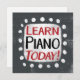 "Learn Piano Today" est un design de texte mignon en gris avec du texte noir et rouge. Il est installé en forme d'accent blanc et de mignons pois blancs l'entourent.