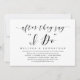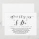 Carte d'invitation de célébration d'élopement de mariage sur le thème du script moderne (Après avoir dit oui). Elle est parfaite pour votre célébration décontractée d'élopement de mariage au bord d'un lac.