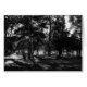 Photo en noir et blanc de l'appareil photo DSLR, joliment détaillé, prise au Bute Park Cardiff, avec les silhouettes d'arbres rétroéclairés et les personnes aux ombres spectaculaires projetées par le soleil de la fin de l'après-midi.
