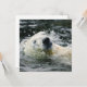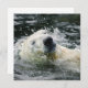 Un ours polaire solitaire nage gracieusement à travers les eaux glacées, sa majestueuse tête blanche cassant la surface avec seulement des gouttelettes d'eau suspendues dans l'air croustillant.