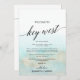 Ces cartes d'accueil et d'itinéraire de plage d'aqua Key West sont parfaites pour un mariage tropical de destination. Le design sobre et moderne présente une étonnante aquarelle turquoise, turquoise et bleu clair avec un éclat doré doux qui rappelle le sable et la mer. Il est associé à une magnifique calligraphie élégante. Le recto de la carte comporte une lettre de bienvenue et le verso de la carte indique l'itinéraire du mariage. Ces notes sont parfaites pour les mariages de destination et les sacs de bienvenue des clients de l'hôtel. Remarque : Ce design ne comporte pas de véritable parties scintillant en or. C'est un graphisme de haute qualité fait pour ressembler à un éclat d'or chatoyant.