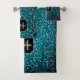 Personnalisez avec votre nom et votre initiale - unique faux décor maison serviette de toilette pour elle. De belles parties scintillant brillantes d'un bleu clair brillant et girly brillent. Photo de cyan bleu étincelle pas de parties scintillant réelle !