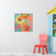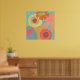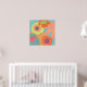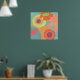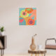Fleurs sur aqua en orange, jaune et mandarine. Cette affiche pop moderne est bonne pour les espaces résidentiels et commerciaux.
