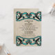 Elégante et chic Faire-part de mariage gothique avec un faux vintage arrière - plan beige texturé et des bordures fleuries tourbillonnantes en turquoise. Ce design ancien est parfait pour un mariage gothique ou vintage. Facile à customiser, il suffit d'ajouter les détails de votre mariage dans les champs de texte fournis. Cliquez sur "Customiser" pour trouver d'autres options de personnalisation.
