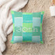 Joli design simple avec des couleurs tendance pour le printemps et l'été (aqua, turquoise et vert clair). Ces carreaux colorés sont faits avec alternance lignes droites et lignes irrégulières comme faux batik. Coussin d'anniversaire personnalisable avec lettrage blanc.