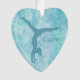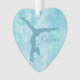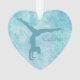 Un gymnaste aqua silhouette fait main sur un côté de ce joli ornement. Son nom est à droite de la figure de gymnaste. Tout est placé sur un arrière - plan abstrait tourbillon turquoise plus léger avec des touches de lavande pâle. L'arrière de l'ornement a un champ blanc en forme de coeur avec plus de champs de texte pour vous de customiser. Le champ de texte est encadré d'un cadre de coeur en faux diamant, qui est ensuite placé sur le même arrière - plan tourbillon aqua que l'avant de l'ornement. Belle et personnalisée pour n'importe quelle fille gymnaste!