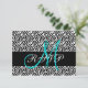 Aqua Monogram Zebra Print Wedding Carte RSVP