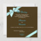 Ruban bleu aquatique sur arrière - plan chocolat. faire-part de mariage élégant et simple.Taille : 5.25 cm x 5.25 cm. Disponible en 4 tailles : Les textes peuvent être modifiés ou supprimés directement sur la page produit.