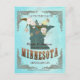 Carte postale Aqua Save The Date avec carte du Minnesota avec de beaux oiseaux sur des branches d'arbre.