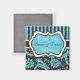 Aqua, White, Brown Damask Wedding Favor Magnet