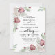 Invitation de mariage romantique et élégante avec des anthuriums d'aquarelle bordeaux clair, feuilles verts et roses et de l'aquarelle verte à l'arrière. Des articles correspondants sont également disponibles.