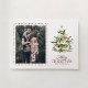 Une carte de vacances festive avec un arbre de Noël aquarelle surmonté d'une étoile dorée et des détails doux rouges et verts. L'avant comprend de l'espace pour votre photo préférée avec un message Joyeux Noël, tandis que l'arrière est livré avec un accueil saisonnier que vous pouvez garder ou remplacer par vos propres mots. Un moyen parfait de partager des voeux de Noël chaleureux avec vos amis et votre famille.