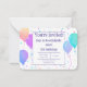 Présentez notre invitation personnalisée à la fête anniversaire de enfant! Ce carte pour notes plat est décoré de charmants ballons d'aquarelle et d'illustrations de confettis sur le devant, donnant un ton festif à votre célébration. Modifiez le nom, l'événement, la date, l'heure et l'emplacement pour le personnaliser pour le jour spécial de votre enfant. Avec ce design polyvalent, vous pouvez créer des invitations aussi uniques que votre thème de fête. Préparez-vous à enchanter les invités et à faire des souvenirs de cette dernière vie!